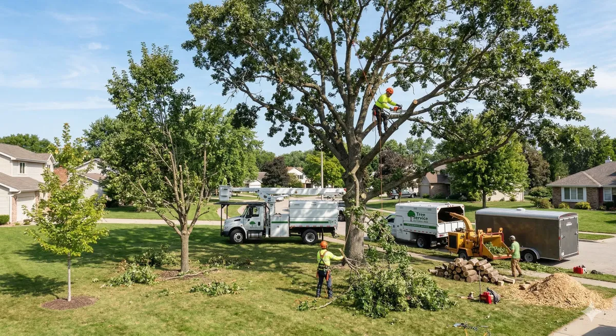 Regular tree maintenance improves tree health, reduces storm damage risk, and helps maintain a clean and safe landscape.